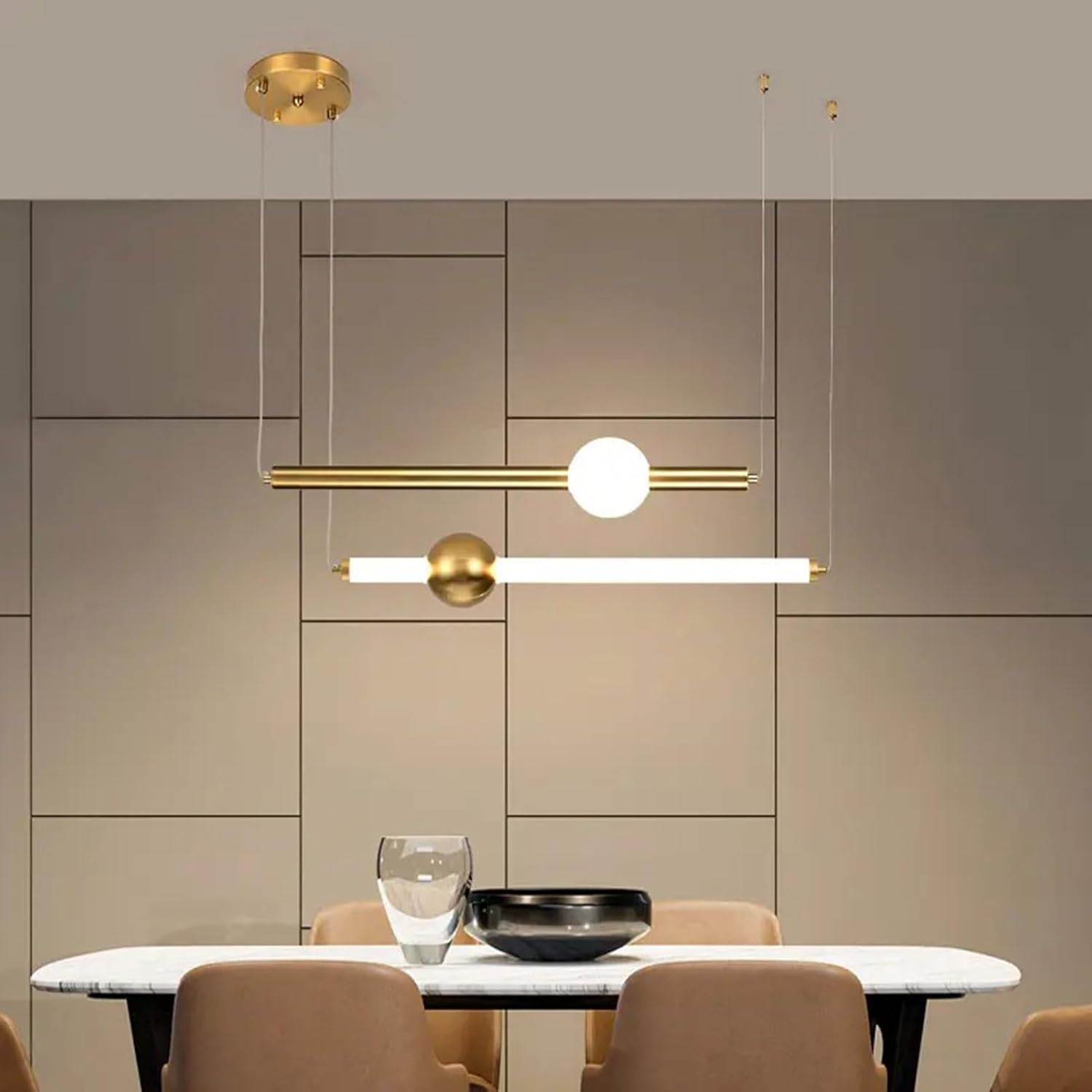 Polyvalent, ce lustre trouve naturellement sa place dans divers environnements : chambre, salle à manger, cuisine, couloir, bar, café, bureau, boutique ou hall d’entrée. Ses dimensions équilibrées (lampe de 61 cm de long, boule de 12 cm de diamètre, câble réglable jusqu’à 120 cm) s’adaptent aussi bien aux plafonds standards qu’aux pièces plus spacieuses. Livré avec une source LED et compatible avec une tension de 110-240V, il est aussi pratique qu’esthétique, devenant rapidement le point central de votre décoration intérieure.