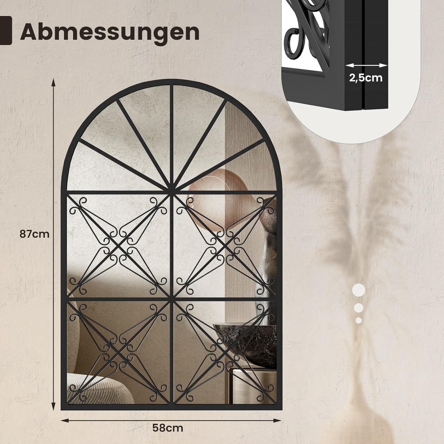 Apportez une touche de charme et de sophistication à votre intérieur avec ce miroir décoratif arqué, inspiré des élégantes fenêtres de cathédrale. Son design raffiné, rehaussé d’un cadre bombé et de motifs floraux métalliques, confère un aspect unique qui sublime instantanément la décoration de votre salon, chambre, entrée ou couloir. Dimensions : 58 x 87 cm (L x l).