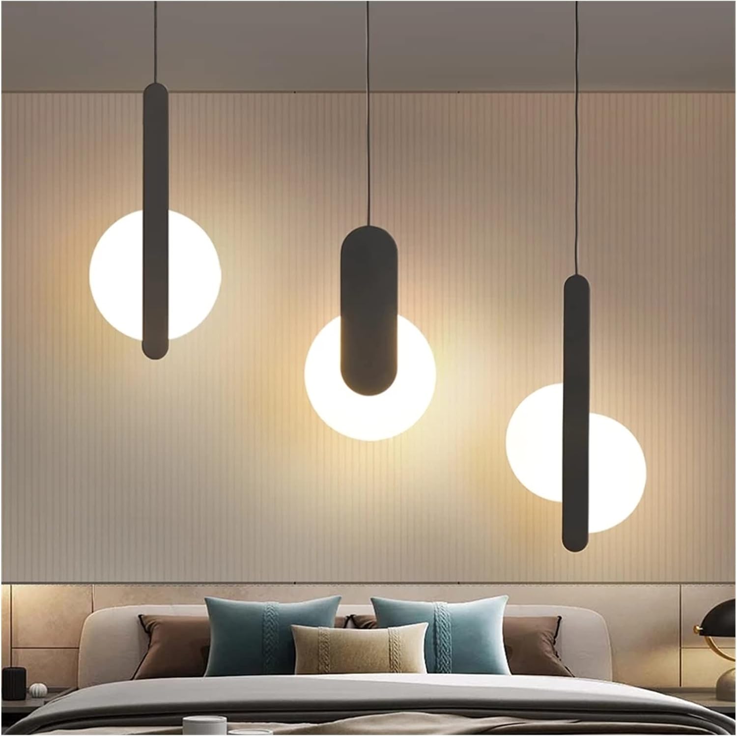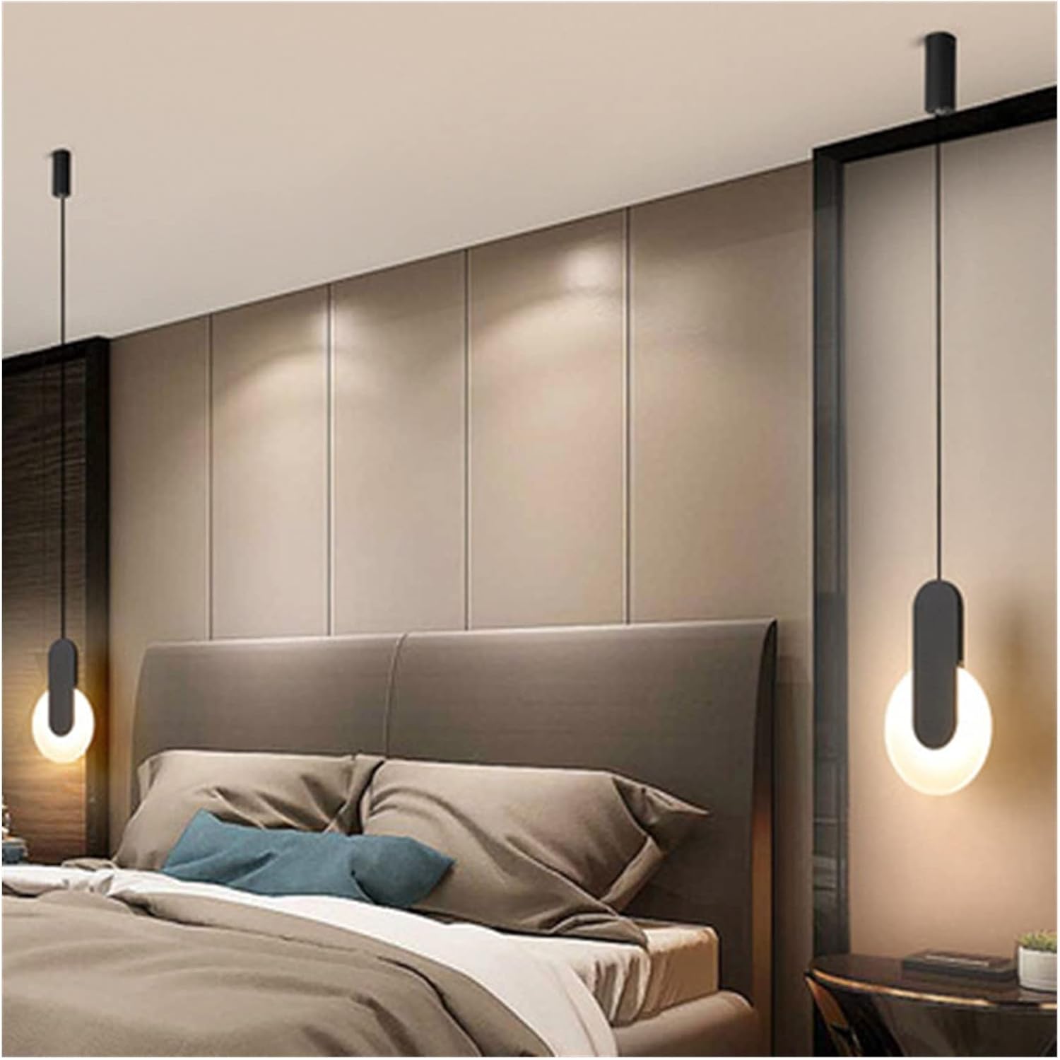 Moderne Chevet Chambre Salon Cuisine Câble Lustre Déco Luminaires Simple LED Pendentif Lumières BlancNoir