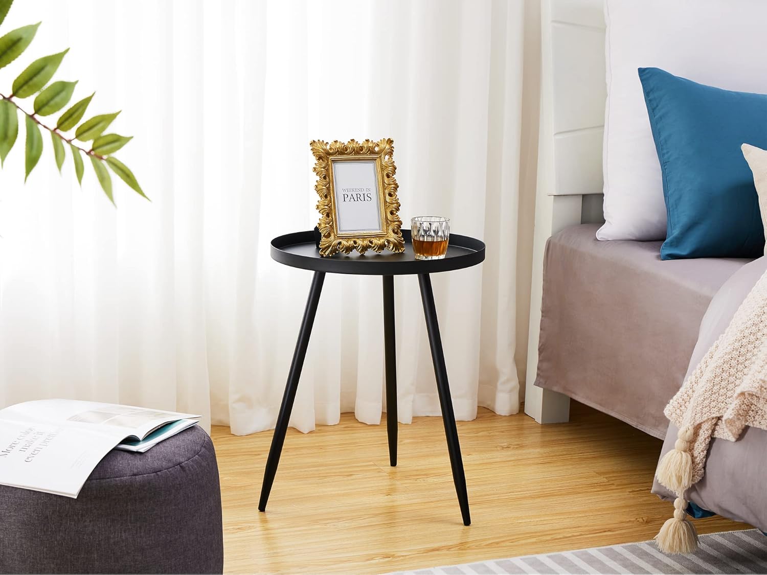 Table d’Appoint Métallique, Petite Table Basse Bois,Table Ronde pour Salon, Chambre, Balcon, Style Scandinave