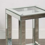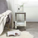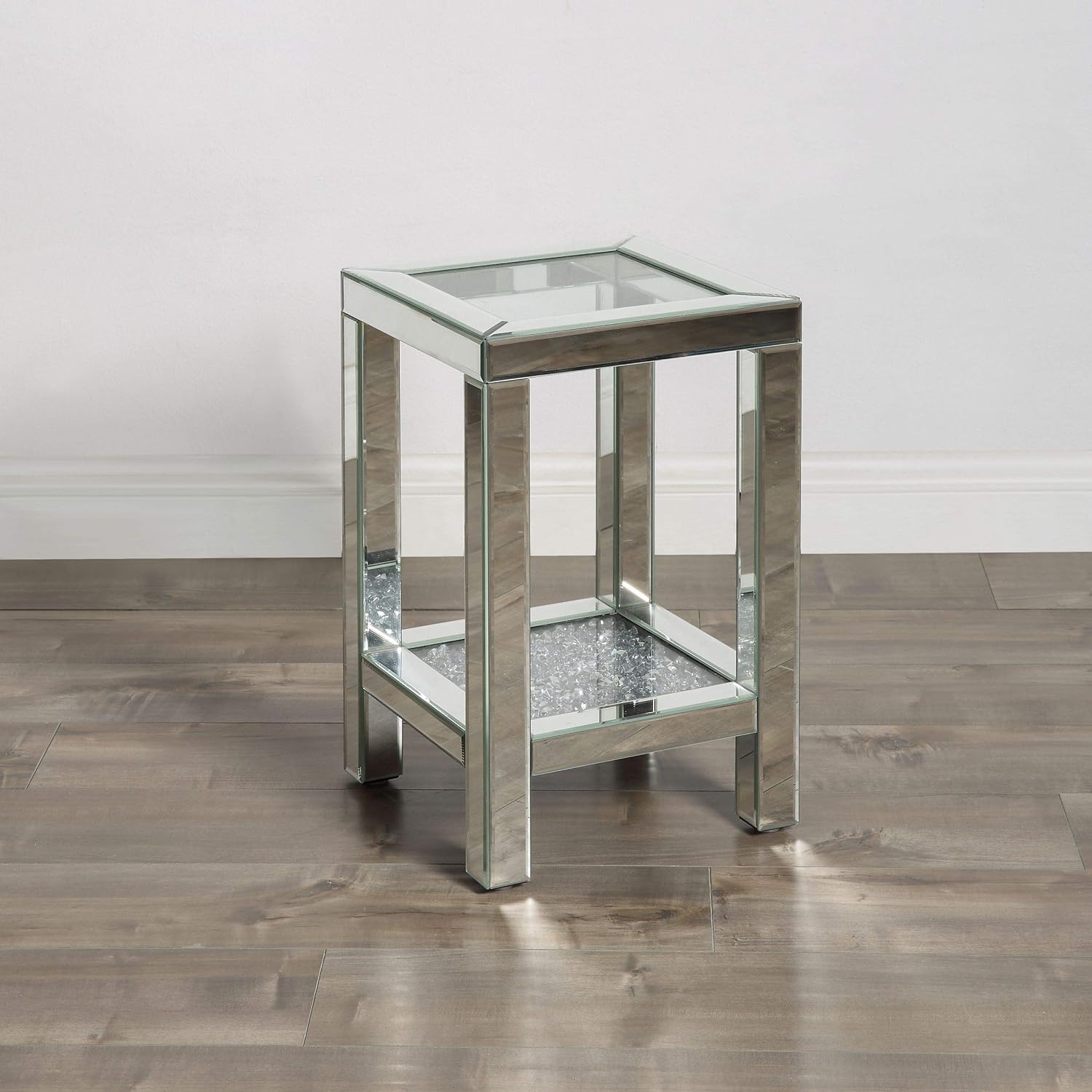 urniture Table d’appoint carrée moderne en miroir avec incrustation en cristal Argenté